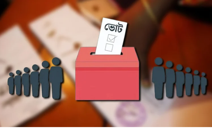 ঢাকা : ‘ভোটের গাড়ি’র প্রচারণায় রাখা ‘জনমত বাক্স’-তে নিজেদের মনের …