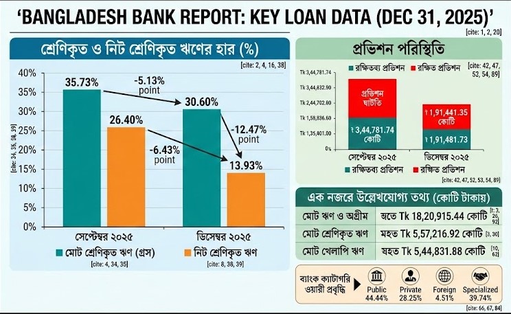 নিজস্ব প্রতিবেদক, ঢাকা : ২০২৫ সালের শেষ প্রান্তিকে বাংলাদেশের ব্যাংকিং খাতে শ্রেণিকৃত বা খেলাপি ঋণের পরিমাণ উল্লেখযোগ্যভাবে হ্রাস পেয়েছে। বাংলাদেশ ব্যাংকের প্রতিবেদন …