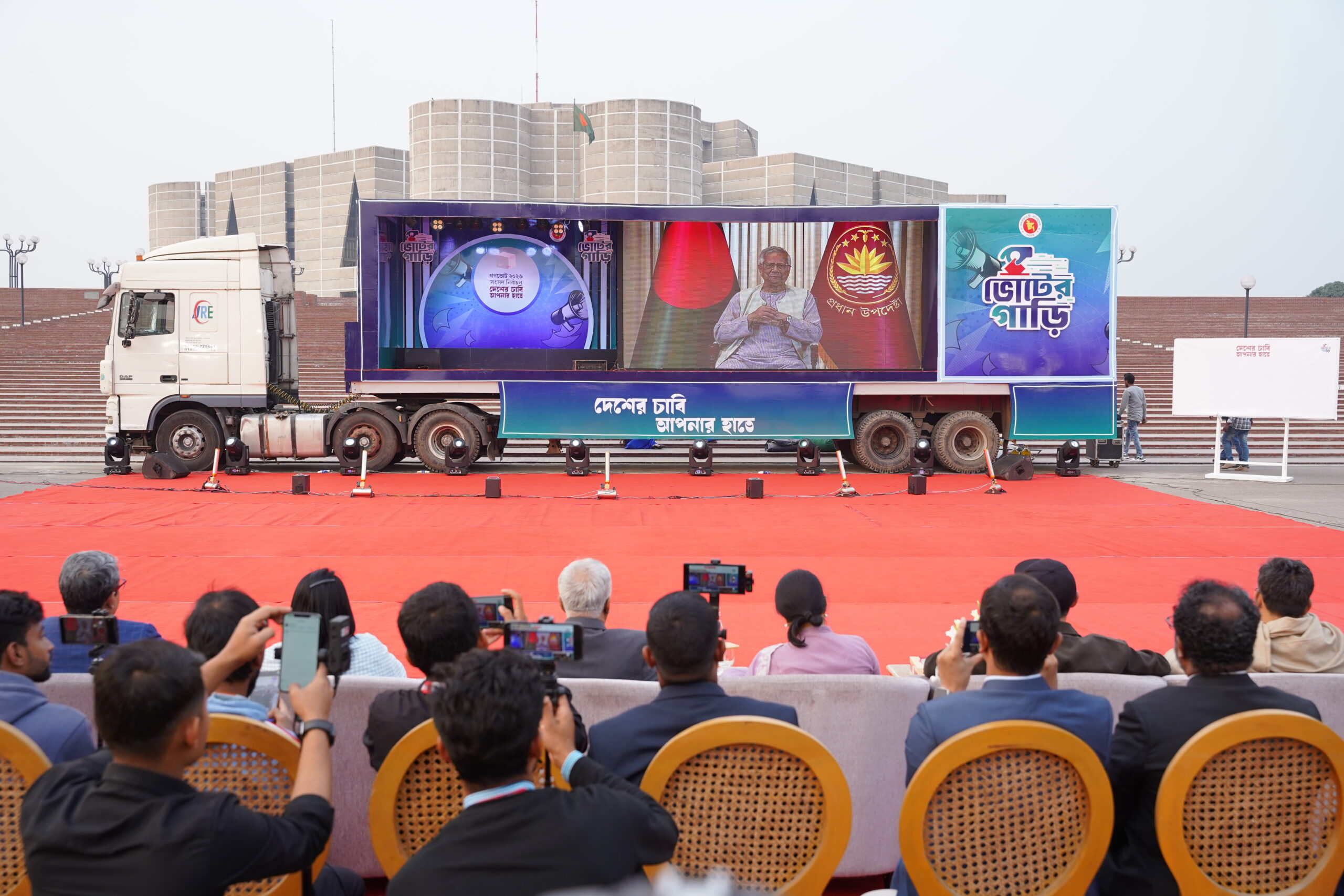 এই লক্ষ্যকে সামনে রেখে যাত্রা শুরু করেছে ১০টি ভোটের গাড়ি- সুপার ক্যারাভান। এসব গাড়ি দেশের ৬৪টি জেলা ও ৩০০টি উপজেলায় ঘুরে বেড়াবে। তারা মানুষের দুয়ারে দুয়ারে গিয়ে নির্বাচন ও গণভোট সম্পর্কে তথ্য পৌঁছে দেবে, ভোটাধিকার সম্পর্কে সচেতনতা তৈরি করবে এবং গণতন্ত্রের বার্তা ছড়িয়ে দেবে।