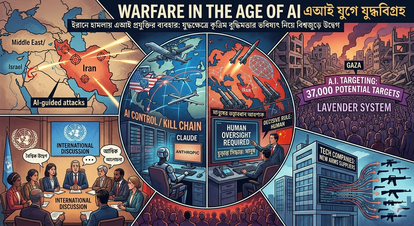 তিনি আরও যোগ করেন, বর্তমান বিশ্বে প্রযুক্তি কোম্পানিগুলো নতুন ধরনের অস্ত্র সরবরাহকারী হিসেবে আবির্ভূত হচ্ছে। এআই-এর এই প্রয়োগ শুধু যুদ্ধকৌশল নয়, বরং বিশ্বব্যবস্থা এবং মানব সভ্যতার গতিপথকেও বদলে দিতে পারে।