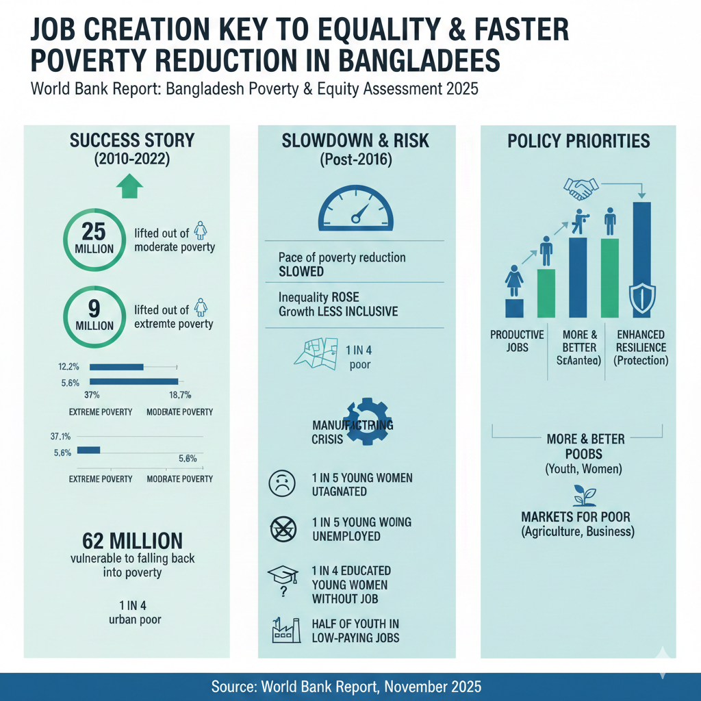 কর্মসংস্থান সৃষ্টিই বাংলাদেশে দারিদ্র্য হ্রাস ও সমতা আনার মূল চাবিকাঠি: বিশ্বব্যাংক