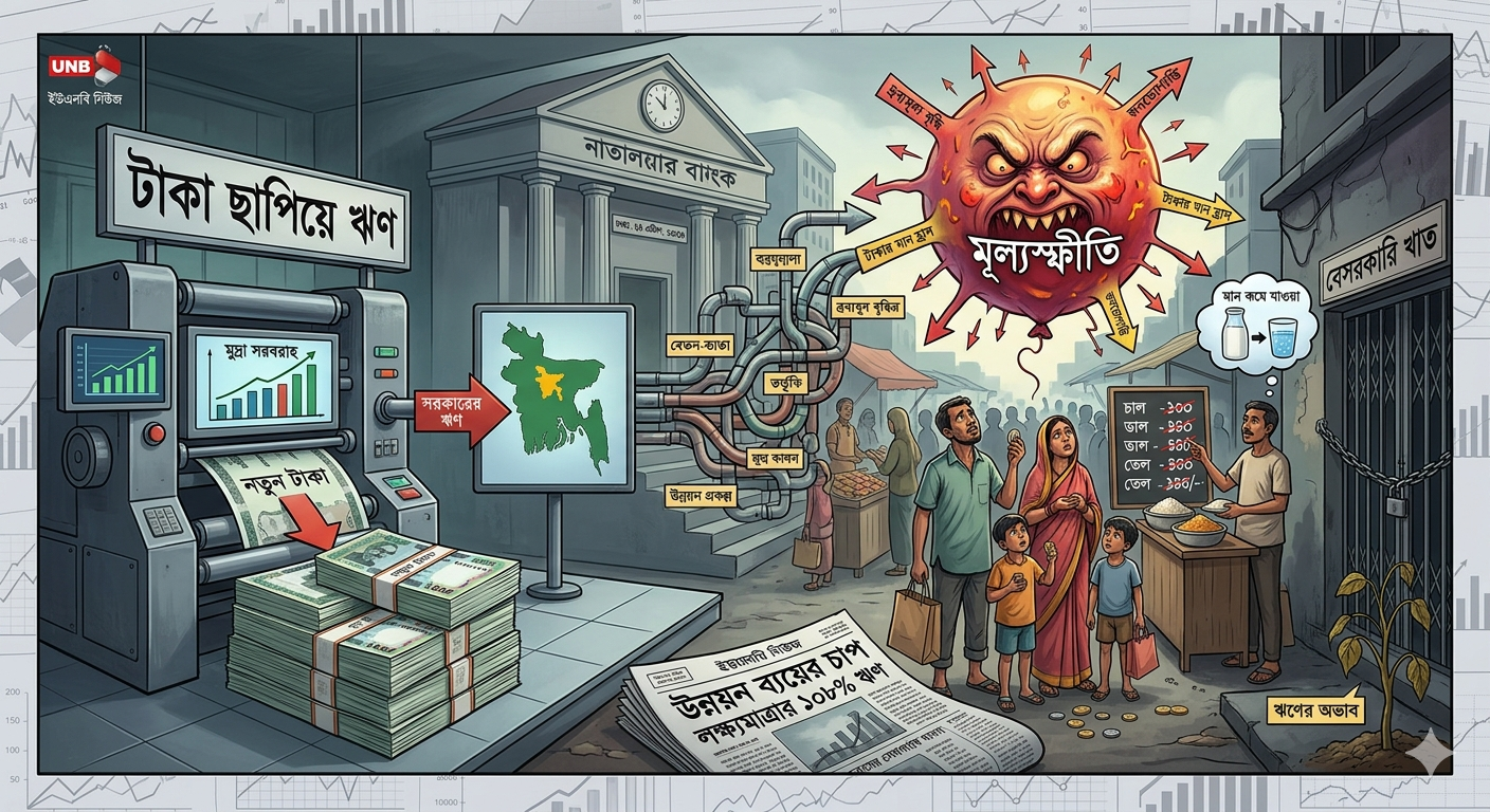 বিশেষজ্ঞ অভিমত অর্থনীতিবিদরা বলছেন, টাকা ছাপিয়ে ঘাটতি মেটানো অনেকটা দুধে পানি মেশানোর মতো; এতে পরিমাণ বাড়লেও পুষ্টিগুণ বা ক্রয়ক্ষমতা কমে যায়। বাংলাদেশ ব্যাংকের উচিত সরকারকে সরাসরি ঋণ দেওয়ার ক্ষেত্রে সর্বোচ্চ সতর্কতা অবলম্বন করা। মুদ্রার সরবরাহ নিয়ন্ত্রণ করা কেন্দ্রীয় ব্যাংকের প্রধান দায়িত্ব হলেও টাকা ছাপিয়ে ঋণ দেওয়া সামষ্টিক অর্থনীতিকে দুর্বল করে ফেলছে।