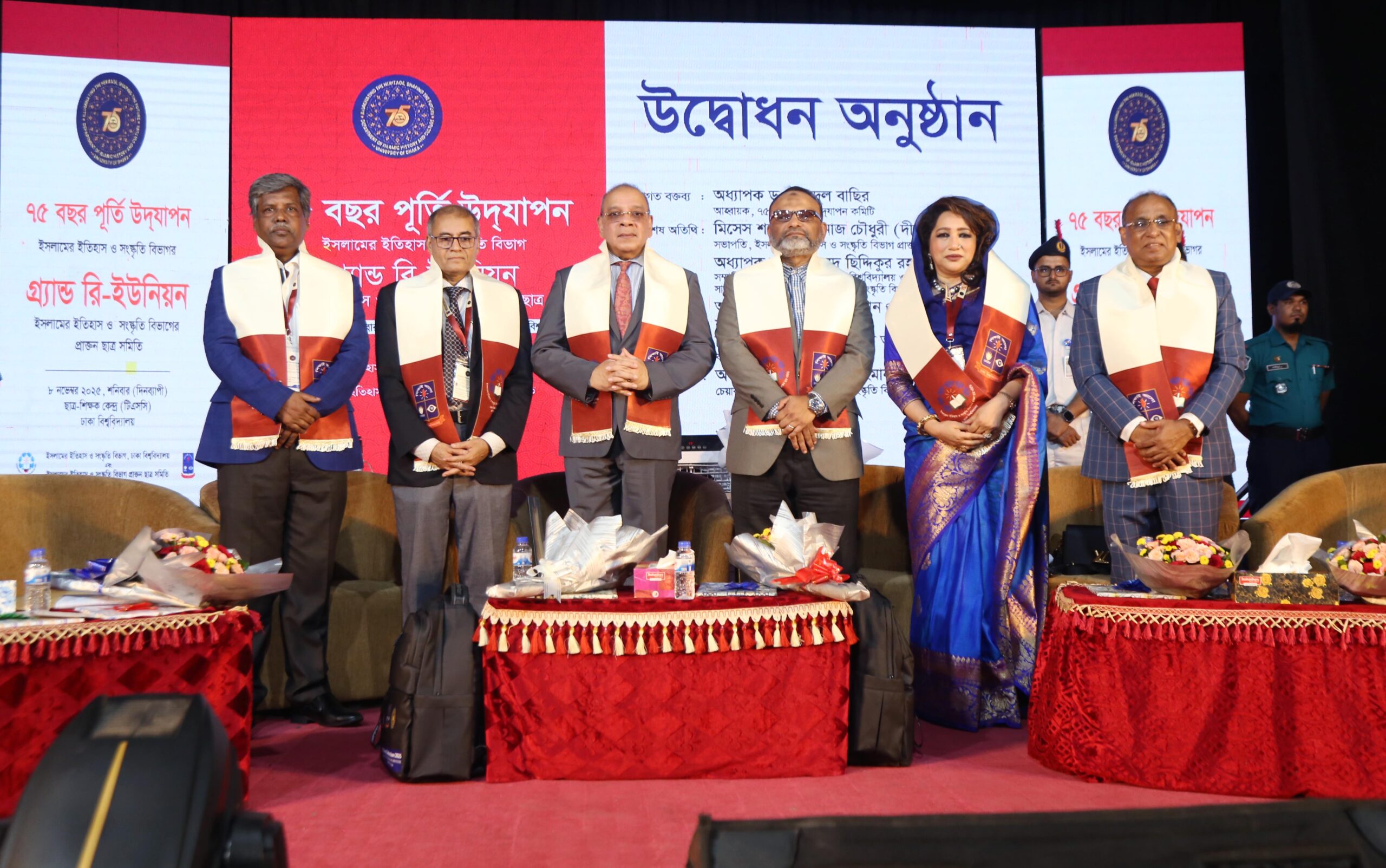 ইসলামের ইতিহাস ও সংস্কৃতি বিভাগের চেয়ারম্যান অধ্যাপক মো. আতাউর রহমান বিশ্বাসের সভাপতিত্বে অনুষ্ঠানে কলা অনুষদের ডিন অধ্যাপক ড. মোহাম্মদ ছিদ্দিকুর রহমান খান ও ইসলামের ইতিহাস ও সংস্কৃতি বিভাগের প্রাক্তন ছাত্র সমিতির সভাপতি মিসেস শবনম শেহনাজ চৌধুরী দীপা বিশেষ অতিথি হিসেবে উপস্থিত ছিলেন। ৭৫ বছর পূর্তি উদ্যাপন কমিটির আহ্বায়ক অধ্যাপক ড. আবদুল বাছির স্বাগত বক্তব্য দেন ।