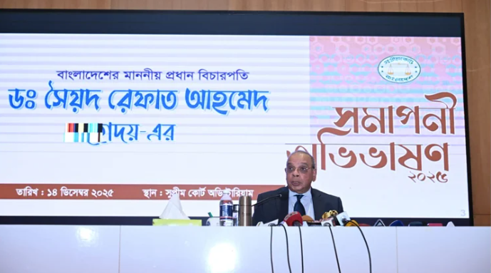 আগামী ২৭ ডিসেম্বর দেশের ২৫তম প্রধান বিচারপতি হিসেবে অবসর গ্রহণের আগে আজ দেয়া বিদায়ী অভিভাষণে তিনি একথা বলেন।