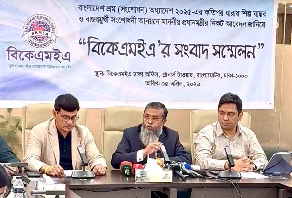 রোববার রাজধানীর বাংলা মোটরে বিকেএমইএ কার্যালয়ে আয়োজিত এক সংবাদ সম্মেলনে সংগঠনের সভাপতি মোহাম্মদ হাতেম এই দাবি জানান। তিনি গভীর উদ্বেগ প্রকাশ করে বলেন, বিগত অন্তর্বর্তীকালীন সরকারের প্রস্তাবিত কিছু সংশোধনী ‘অস্পষ্ট’ এবং এগুলো শিল্প খাতকে অস্থিতিশীল করার একটি ‘পরিকল্পিত অপচেষ্টা’ বলে মনে হচ্ছে।