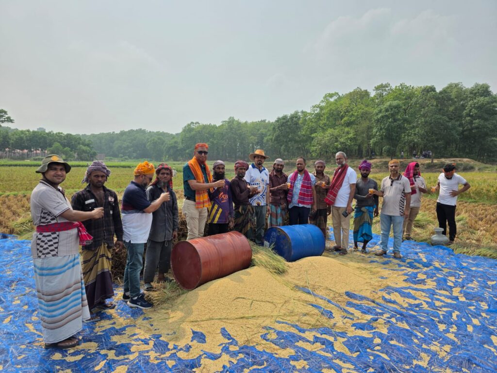 শনিবার (২৫ এপ্রিল) গাজীপুরের এই নিভৃত পল্লীতে মানবিকতার এক অনন্য নজির স্থাপন করলো রোটারি ক্লাব অব ভাওয়াল। শ্রমিক সংকট আর আকাশছোঁয়া মজুরির এই সময়ে যখন মাঠের পাকা ধান ঘরে তোলা নিয়ে দুশ্চিন্তায় ছিলেন প্রান্তিক কৃষকেরা, ঠিক তখনই ত্রাতা হয়ে মাঠে নামলেন এই সেবা সংগঠনের সদস্যরা।