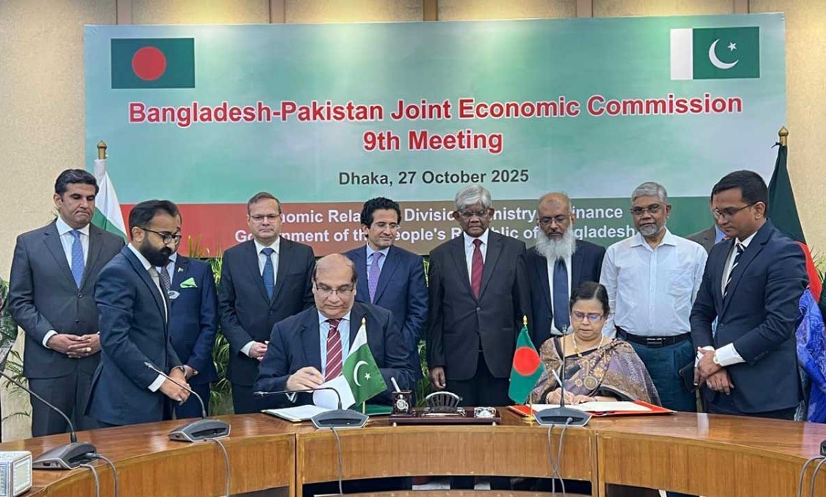 আজ, সোমবার (২৭ অক্টোবর), রাজধানীর শেরেবাংলা নগরের এনইসি সম্মেলন কক্ষে অনুষ্ঠিত বাংলাদেশ-পাকিস্তান যৌথ অর্থনৈতিক কমিশনের ৯ম বৈঠকে এই সমঝোতা স্মারক স্বাক্ষরের আনুষ্ঠানিকতা সম্পন্ন হয়। বাংলাদেশের পক্ষে অর্থ উপদেষ্টা ড. সালেহ উদ্দিন আহমেদ এবং পাকিস্তানের পক্ষে দেশটির পেট্রোলিয়াম মন্ত্রী আলী পারভেজ মালিক নিজ নিজ দেশের প্রতিনিধিদলের নেতৃত্ব দেন।